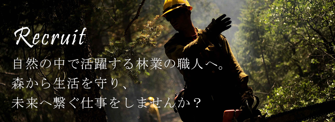 今までの林業のイメージを変え新しいスタイルの提案を行い、永く働く事の出来る会社を目指します。